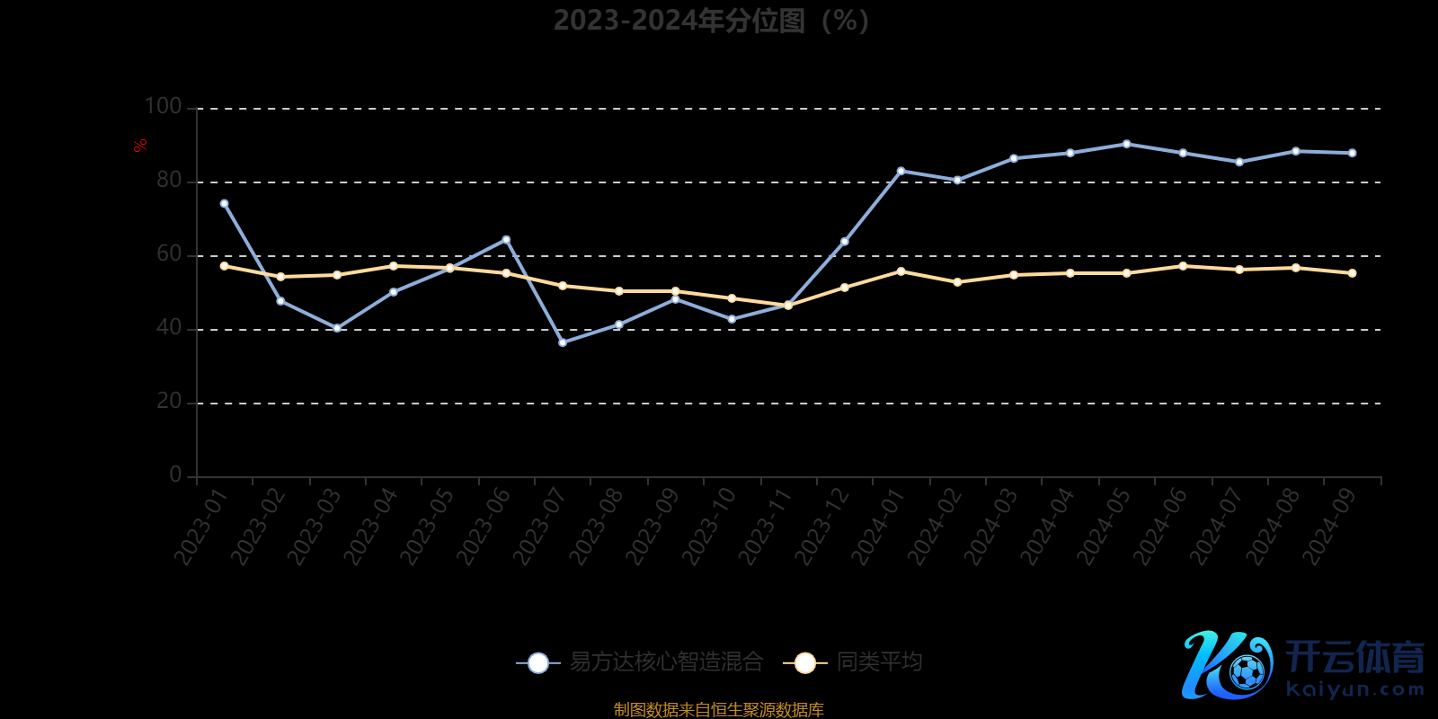 通过所选区间该基金净值增长率分位图,不错不雅察该基金与同类基金事迹比拟情况。图为坐标原点到区间内某时点的净值增长率在同类基金中的分位数。