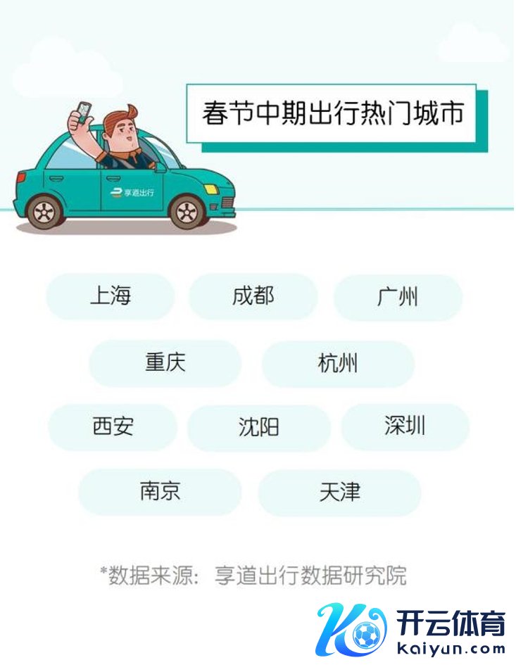 比较往年春节,本年假期更长,因此不少东谈主选拔“分段过年”,即假期“前半段”回家省亲纠合,“后半段”出门旅行。从出行需求热度来看,上海、成都、广州、重庆、杭州、西安、沈阳、深圳、南京、天津网约车订单高企,位列享谈春节中期出行热点城市“TOP 10”榜单。