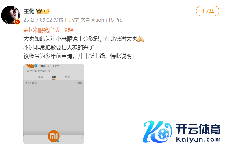 小米集团公关部总司理王化陈述小米眼镜官博上线:帐号为多年前恳求 并非新上线小米集团公关部总司理王化陈述小米眼镜官博上线:帐号为多年前恳求 并非新上线